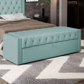 Calçadeira Báu Queen Size Atena 160cm Capitonê Veludo Acqua - Abmaza - Azul Turquesa