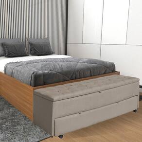 Calçadeira Baú Sapateira Casal 140cm Ayla Suede Capitonê - Estopar - Bege