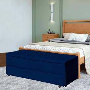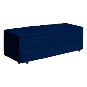 Calçadeira Baú Sapateira Casal 140cm Ayla Veludo Capitonê - Estopar - Azul Marinho