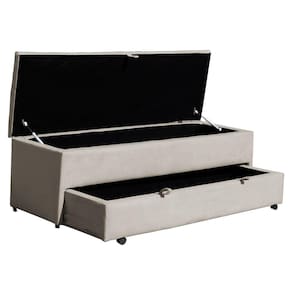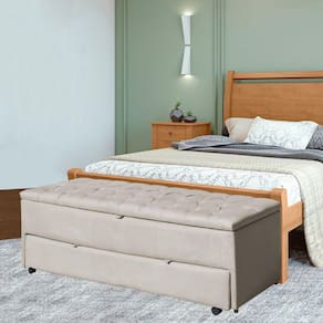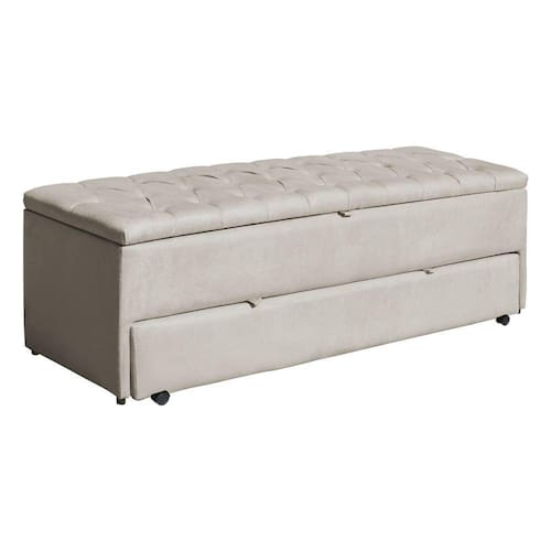 Calçadeira Baú Sapateira Casal 140cm Ayla Veludo Capitonê - Estopar - Bege
