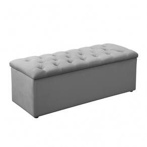 Design moderno e funcional Revestimento cinza neutro, fácil de combinar Estrutura firme e durável Pode ser usada como assento, apoio ou baú (caso o modelo inclua abertura)