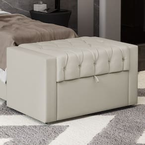 A Calçadeira Baú Atena é a solução ideal para quem busca praticidade e organização no quarto. Com sua estrutura de madeira de reflorestamento e estofamento em espuma D-20 e D-23, oferece conforto e durabilidade. Seu design versátil combina com diversos estilos de decoração, enquanto o acabamento em Capitonê adiciona um toque de sofisticação ao ambiente. Além disso, sua abertura com alça e dobradiça metálica facilita o acesso aos calçados e ao guarda-jogo de cama, mantendo tudo sempre ao alcance.