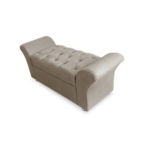 Calçadeira Baú Veneza Para Cama Solteiro 90 cm Suede Bege LM DECOR - Palha