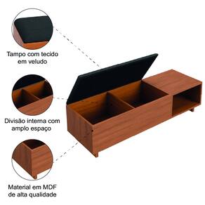 MEDIDAS: [ A ] = 43 cm [ L ] = 136 cm [ P ] = 39 cm MEDIDAS DOS PÉS: [ A ] = 12 cm [ L ] = 2,5 cm [ P ] = 26 cm PESO: 28,80 kg MODELO: Calçadeira com Baú para Quarto Veludo Malaga MARCA: Dobuê COR: Madeirado / Preto ESTRUTURA: MDF REVESTIMENTO: Tecido Veludo ACABAMENTO: Pintura UV PÉS: 2 em MDF SISTEMA DE MONTAGEM: Parafusos CUIDADOS E LIMPEZA: Limpeza com pano úmido, não usar produtos abrasivos DIFERENCIAL: Assento confortável com tecido veludo, nicho lateral para objetos decorativos, estrutura reforçada em MDF ITENS INCLUSOS: 1 Calçadeira e Manual de Montagem GARANTIA: 3 meses