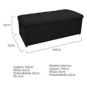Calçadeira Copenhague 160 Cm Queen Size Suede Preto - Doce Sonho Móveis