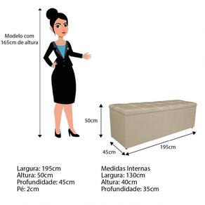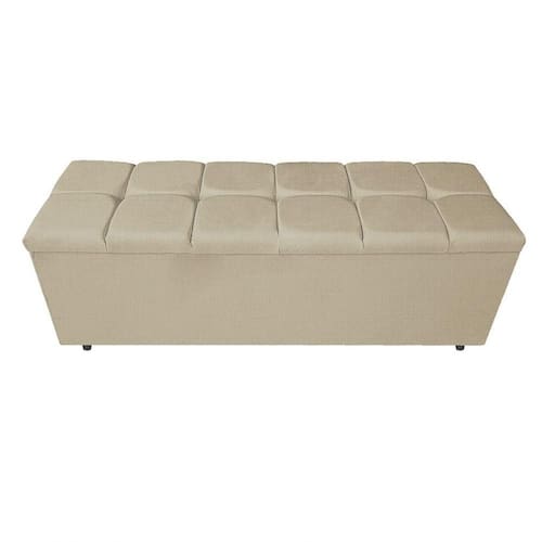 Calçadeira Estofada Manchester 195 Cm King Size Linho Bege - Doce Sonho Móveis