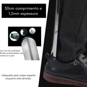 Calçadeira em aço inox de alta qualidade 30cm e 1,2mm espessura. Esta calçadeira é fabricada em aço inox 1,2mm de espessura de alta qualidade e bem resistente, não irá dobrar ou enferrujar. As bordas arredondadas extra largas criam um ângulo perfeito para deslizar facilmente. Projetado com duas pontas funcionais encaixa perfeitamente em sapatos de qualquer tamanha ou modelo, facilitando de maneira ergonômica e sem esforço físico o ato de calçar seus sapatos, além de ser muito mais rápido e confortável. O uso regular dessa calçadeira prolonga inclusive a vida útil de seu sapato. Especificações Comprimento: 30cm Largura maior calçar : 4,2cm Largura menor empunhadura : 2,5cm Espessura: 1,2mm Material: aço inoxidável Cor: Prata Quantidade: 1pc Conteúdo da embalagem:1 Calçadeira Inox 30cm ==================================== de 90 dias para defeitos de fabricação ==================================== Marca: Não Informado