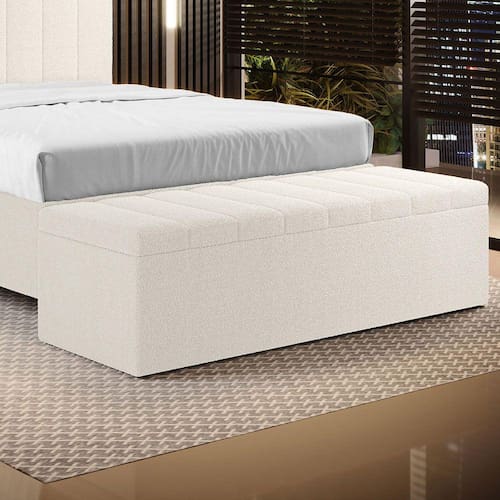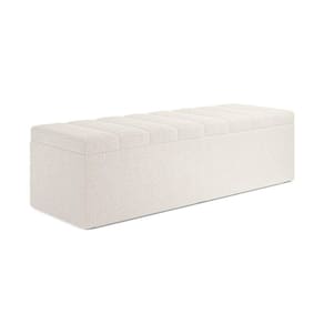 Características do Produto: Madeira de eucalipto proveniente de reflorestamento Fixação com grampos galvanizados Espuma Poliuretano D20 Revestimento: Bouclê Cor: Off White Tamanho: Casal padrão para cama de 138 cm Possui pés: Sim Tipo de pés: 4 sapatas Possui baú interno Embalagem: plástico bolha, papelão ondulado, malha, plástico Garantia de 3 meses contra defeitos de fábrica.