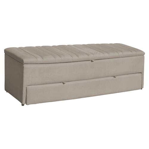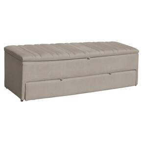 Calçadeira Recamier Baú Sapateira Casal King 190cm Ayla Suede Tampo Reto - Estopar - Bege