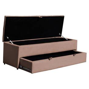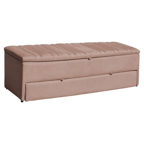 Calçadeira Recamier Baú Sapateira Solteiro 90cm Ayla Veludo Tampo Reto - Estopar - Rosa