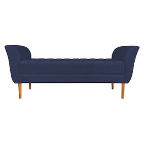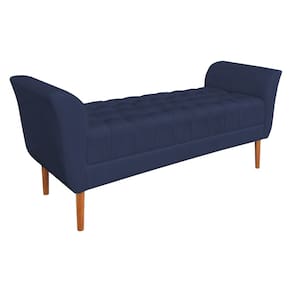 Calçadeira Recamier Casal 1,50m Londres Veludo Azul Marinho - Pallazio