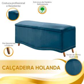 Calçadeira Sapateira Baú Holanda 140cm de Largura Veludo Star Confort - Azul