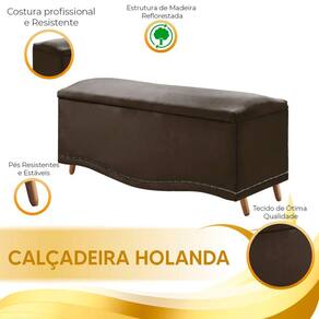 Calçadeira Sapateira Baú Holanda 90cm de Largura Veludo Star Confort - Marrom Chocolate