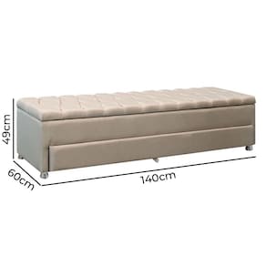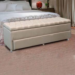 Características: Material da Estrutura: Madeira de eucalipto Material e Densidade da Espuma: Poliuretano sem carga certificada, D-20 Revestimento: Linho Possui Pés: Sim Tipo de Pé: Pé de plástico revestidos de metal com 5 cm Possui Frame: Não Pistões no baú: Sim a gás Possui gaveta: Sim
