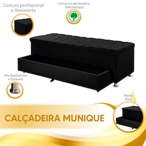 Calçadeira Sapateira Baú Munique Veludo 195cm De Largura Star Confort Preto