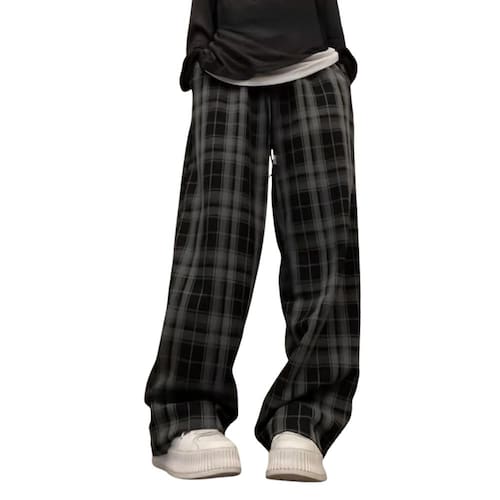 Calças Grunge Lounge - Roupas vintage góticas emo - estilo xadrez, Cinza 2, G