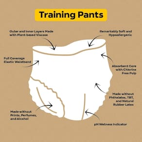Nós dominamos fraldas. E você também pode. Instruções de uso: 1. Abra a fralda e deslize-a sob o seu bebê enquanto levanta suavemente as pernas e os pés. Certifique-se de "massagear" a fralda para remover quaisquer vincos ou imperfeições da embalagem. 2. Coloque a parte frontal da fralda entre as pernas do seu bebê e sobre a barriga. 3. Traga as tiras de fixação e aperte confortavelmente. Não seja tímido. 4. Passe seus dedos ao longo da borda interna da fralda nas aberturas das pernas para ativar a proteção contra vazamentos. 5. Realize a verificação confortável – você mal conseguirá inserir o dedo entre a fralda e o corpo do seu bebê. Use e continue. - Simplesmente gentil com o bebê: experimente calças de treinamento descartáveis à base de plantas projetadas para peles sensíveis de crianças pequenas. Forros à base de plantas para maior conforto, absorção superior e máxima retenção de líquidos. - Elástica, macia, confortável: notavelmente macia ao toque, absorvente e cuidadosamente feita com ingredientes honestos. Elas parecem mais calças de ioga do que fraldas convencionais com um ajuste quase como roupa íntima. - Absorvente, segura, versátil: certificada com os mais altos padrões de segurança do consumidor OEKO-TEX. Ótima como uma alternativa de fralda de pano, para treinamento de meninos e meninas, proteção noturna e hora de vestir. Defenda-se contra vazamentos com um ajuste seguro que é fácil de puxar para cima e deslizar. - Responsável e feita com materiais à base de plantas: nossas calças de treinamento infantil são a escolha dos pais porque são feitas sem álcool, cloro, látex, perfumes, PVC, loções, TBT, parabenos, sulfatos e ftalatos. Elas não são impressas, sem cheiro, hipoalergênicas e livres de crueldade para proteger a próxima geração. - Cada pacote contém 68 calças de treino tamanho 5T-6T (GGG) para bebês acima de 41 kg.