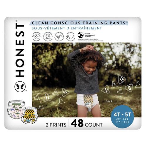 The Honest Company Calça de treinamento Clean Conscious | Fraldas sustentáveis à base de plantas | Rompin' & Stompin' + Diggin' It | Tamanho 4T/5T (38+ lbs), 48 unidades - Torne o processo de treinamento do penico muito fácil com nossas calças de treinamento Clean Conscious à base de plantas. Com um núcleo super absorvente e projetado para ser fácil de colocar e tirar, estes itens macios e aconchegantes tornam a transição para o banheiro o mais suave possível. Com proteção diurna ou noturna integrada e tantas estampas adoráveis, seu pequeno se sentirá fofo, confiante e pronto para usar o banheiro 24 horas por dia - As calças de treinamento Clean Conscious são projetadas com materiais seguros à base de plantas e polpa de pelúcia sustentável que é proveniente de forma responsável da América do Norte para reduzir a pegada de carbono de transporte e agora tem certificação OEKO-TEX STANDARD 100 - Cintura elástica em toda a volta: o uso flexível e elástico para um suporte confortável, mas confortável, torna fácil para o seu filho vestir e tirar sozinho; Ajuste de roupa íntima para crianças grandes: camadas internas e externas supermacias proporcionam uma sensação leve que seu filho vai adorar - Proteção superabsorvente: núcleo com bloqueio de líquido e punhos de camada dupla de barreira de umidade com ajuste seguro ajudam a evitar vazamentos para manter seu filho seco - proporcionando conforto e proteção diurna ou noturna; Costuras perfuradas convenientes: para mudanças rápidas e fáceis, rasgue facilmente a costura lateral, remova e jogue - Materiais de origem responsável; aprovado pela pele sensível; hipoalergênico; feito sem: látex, fragrância e parabenos; livre de crueldade e nunca testado em animais