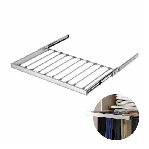 Calceiro Deslizante 900mm FGVTN O Calceiro Deslizante 900mm FGVTN é um acessório que além de deixar seu guarda roupa mais pratico tambem facilita a organização das suas peças. Item indispensável para quem deseja deixar o ambiente mais sofisticado e moderno. Possui uma excelente estrutura em aço carbono apresentando assim ótima durabilidade. O produto acompanha as corrediças telescópicas para que o Calceiro tenha um deslizamento suave ao realizar o movimento de abrir e fechar. Características: - Modelo: CD135 - Cor: Aluminio Fosco -Capacidade: 12 Varetas - Marca: FGVTN Dimensões: - Largura: 90cm - Altura 4cm - Profundidade: 46,5cm