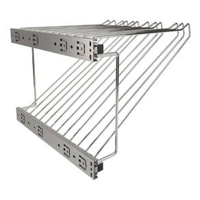 Calceiro Quadro - Extração Tubular com puxadores em arame de Ø6mm, com 12 varetas e acompanha trilhos telescópicos. Para uso: Em nicho Medidas: 380x250x410mm Material: Aço Cromado Garantia: 12 Meses