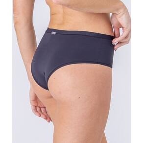 A calcinha sem elásticos não marca e nem aperta o corpo, proporcionando a sensação de bem-estar, sendo uma ótima opção para quem busca conforto e discrição no dia a dia. Com cintura alta ela se ajusta e não enrola, seu tecido em microfibra garante o toque aveludado na pele e o forro em algodão aumenta o poder de absorção da calcinha.