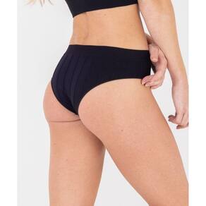 Cós em trama canelada: O cós em trama canelada oferece um melhor ajuste ao corpo, firmeza e controle na área da cintura, sem apertar ou deixar marcas.