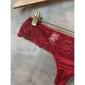 Calcinha vermelha com detalhe em renda sem costura. Para as apaixonadas por detalhes a renda macia no cós e nas cavas das pernas traz um toque delicado e deixa esta peça com um diferencial incrível. O jacquard flower sofisiticado alia conforto em uma só proposta!
