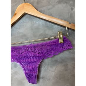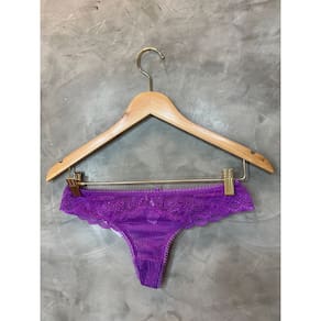 Calcinha Fio dental em tule roxa , sexy e sensual, romantica com lateral larga em renda - Roxo - G