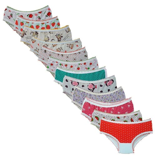 Kit com 12 calcinhas infantil é confeccionado em algodão na modelagem tanga, indicado a crianças da Fase Infantil a Pré-adolescência.