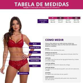 Tamanho P: Cintura Baixa 83 a 87cm / Quadril 88 a 92cm