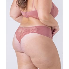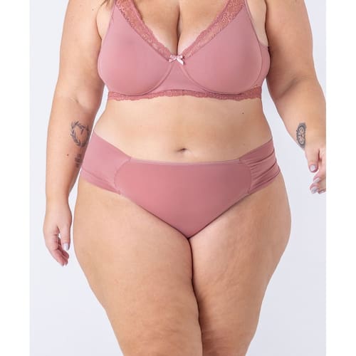 -Calcinha Plus Size em microfibra, com laterais drapeadas e fio dental em renda