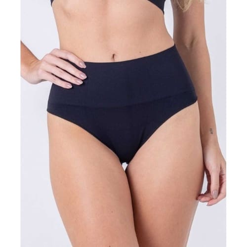 Calcinha sem costura cintura alta com reforço na barriga - P - Preto