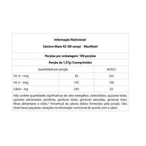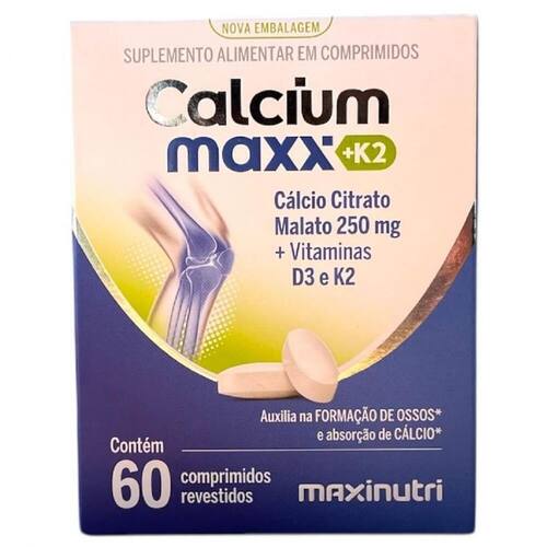 Calcium Maxx K2 60 comp - Padrão: Único Calcium Maxx K2 60 comp O Calcium Maxx é um suplemento essencial para a saúde óssea. Desenvolvido para contribuir na formação e manutenção dos ossos, ele ajuda a suprir as necessidades diárias de cálcio, promovendo mais equilíbrio e bem-estar. benefícios: - Fortalecimento dos ossos: auxilia na formação e densidade óssea.- Manutenção da saúde óssea: ideal para prevenção de problemas associados à deficiência de cálcio.- Suporte nutricional: complementa a dieta com uma fonte prática de cálcio Marca: Não Informado
