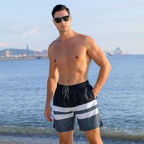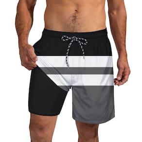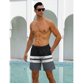 Cozople Calção de banho masculino com forro de compressão, secagem rápida, 18 cm, calção de banho e bolso para telefone, Listra preta - Tecido – Os shorts de praia masculinos de compressão são feitos de secagem rápida, leve, respirável e elástico, 100% poliéster que bloqueia 98% dos raios UV prejudiciais - Características: compressão de nova geração com design de telefone forro. Este forro luxuoso é um forro interno de ângulo plano leve, super suporte e resistente à abrasão, que pode proteger sua pele do atrito e evitar o constrangimento de grudar na pele quando os calções de banho estiverem encharcados. Tamanho americano padrão, costura interna de 18 cm, comprimento até o joelho, tradicional, mas elegante - Cordão funcional e ilhós de metal – Estes trajes de banho masculinos têm cordão real em toda a cintura que pode ser apertado, a cintura elástica oferece um ótimo ajuste pessoal mesmo para homens magras e roucas, também ajudam a proteger firmemente ao realizar atividades rigorosas - Forro confortável de boxer: material macio e macio para o forro de compressão embutido, mas o forro não é muito apertado. Este calção de banho permitirá que seu namorado e marido aproveitem a praia, piscina sem queimaduras de atrito, confortável e de suporte. Também não é apenas um traje de banho, mas também uma boa peça para brincar, correr, treinar, treinar - Shorts de natação masculinos com forro de compressão estão disponíveis em uma variedade de estilos e tamanhos. Consulte a tabela de tamanhos ao comprar. Observação: a cor pode ser ligeiramente diferente sob diferentes monitores