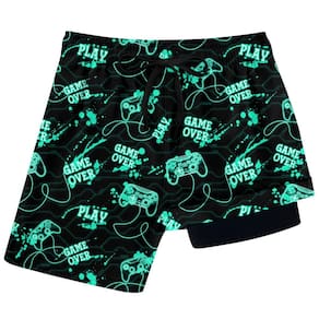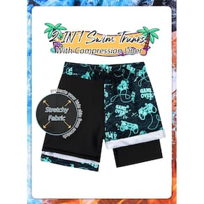 Lovekider Calções de banho para meninos de 5 a 16 anos com forro de compressão à prova d'água de secagem rápida, Consoles de jogos - Calção de banho boxer 2 em 1 para meninos: os calções de banho para meninos têm um forro de compressão embutido que protege sua pele de arranhões e evita que grude na pele quando os shorts estão encharcados. enquanto oferece melhor respirabilidade e elasticidade - Tecido resistente à água: shorts de natação para meninos feitos de material de poliéster e elastano, repelente de água, secagem rápida, respirável, leve. A cueca boxer de compressão elástica em 4 direções mantém seus filhos se moverem livremente - Cintura elástica com cordão: o calção de banho para meninos com cintura elástica e cordão ajustável, pode ajustar sua cintura livremente e evitar flacidez quando os calções estão molhados, seus filhos podem aproveitar seu tempo na praia com confiança - 3 bolsos utilitários: os shorts masculinos têm 2 bolsos laterais espaçosos em malha para facilitar a drenagem de água e areia rapidamente, mantendo seus pertences seguros, 1 bolso forrado de compressão para armazenamento extra de itens pequenos - Ocasiões: Calção de banho forrado com compressão para meninos, perfeito para nadar, surfar, velejar, caiaque, festa na praia, cruzeiro, férias, piscina ou outras atividades esportivas aquáticas, uso casual e para passeios em família. A melhor escolha para atividades internas e externas