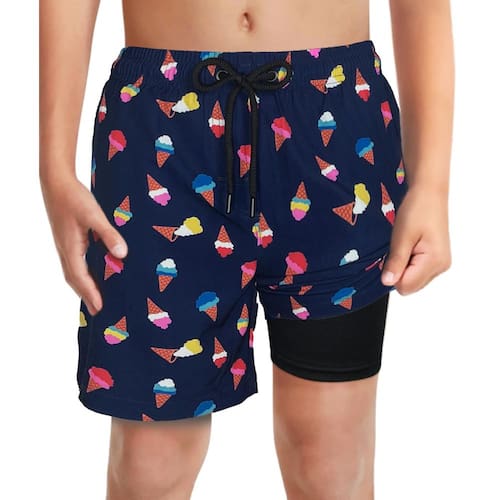 LUCOWEE Calção de banho para meninos com cueca boxer de compressão antiatrito shorts de natação elástico FPS secagem rápida, Sorvete azul - Tecido elástico de 4 vias reciclado: 90% poliéster reciclado, 10% elastano, material mais espesso. Shorts de natação de qualidade, leve, de alto desempenho e repelente de água para secagem rápida, recursos de absorção de umidade e acabamento FPS 50+ para proteger as crianças dos raios solares ultravioleta prejudiciais, um item essencial para a praia! - Forro de compressão confortável: elastano macio e macio para o forro boxer embutido. Considerando que seus filhos precisam dar um pouco no período de crescimento, o forro interno não é muito apertado. Este calção de banho permitirá que seus meninos aproveitem a praia, piscina sem queimaduras por atrito, se sintam confortáveis e com suporte. Também não é apenas um traje de banho, mas também uma boa peça para brincar, correr, treinar, treinar... - Cordão funcional e ilhós de metal – Estes trajes de banho para meninos têm cordão real em toda a cintura que pode ser apertado. A cintura elástica oferece um ótimo ajuste pessoal mesmo para meninos magras ou roucas, também ajudam a proteger firmemente ao realizar atividades rigorosas. Tamanhos de crianças de 3 a 16 crianças, 18 a 20 anos para jovens, homens jovens, PP. - Tamanho regular para meninos: tamanho normal dos EUA, leia a imagem da tabela de tamanhos. Se o seu filho for magro ou médio, compre o tamanho da sua cintura. Então, se ele for um tamanho robusto, compare sua cintura com o peso e escolha um tamanho maior na tabela. Como mãe de 2 meninos, aconselho que você escolha um tamanho maior se seus filhos estiverem entre 2 tamanhos, os meninos crescem tão rápido na adolescência! - Mais bônus que você recebe – 3 bolsos: bolsos laterais profundos reforçados com forro de malha perfurada para drenagem eficiente, bolso traseiro seguro com aba de fecho aderente para guardar objetos de valor também com ilhós de drenagem. Estampas e estampas exclusivas, você terá um par de calção destinado a ser sempre confiável durante todo o verão ensolarado. Poucos dólares adicionados, dupla felicidade!