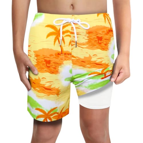 LUCOWEE Calção de banho para meninos com forro boxer de compressão antiirritação, short de natação elástico FPS de secagem rápida, Ilha laranja - ? Tecido elástico de 4 vias reciclado: 90% poliéster reciclado, 10% elastano. Parte inferior de natação durável, leve de alto desempenho e repelente de água para secagem rápida, com recursos de absorção de umidade e um acabamento FPS 50+ para proteger as crianças dos raios ultravioleta nocivos do sol. - ? Forro curto confortável – Material macio e macio para o forro de compressão embutido, mas o forro não é muito apertado, considerando que seus filhos precisam de um pouco no período de crescimento. Este calção de banho permitirá que seus meninos aproveitem a praia, piscina sem queimaduras, confortável e de suporte. Também não é apenas um traje de banho, mas também uma boa peça para brincar, correr, treinar, treinar... - ? Cordão funcional e argolas de metal – Estes trajes de banho para meninos têm cordão real em toda a cintura que pode ser apertado, a cintura elástica gentil oferece um ajuste ótimo e pessoal mesmo para meninos magros e husky, também ajudam a se prender firmemente ao realizar atividades rigorosas. Tamanhos grandes para meninos tamanhos 6-8 10-12 14-16 18-20 é um item essencial para a praia. al,incluindo jovens homens jovens. - ? Tamanho regular para meninos – Tamanho normal dos EUA, talvez fique um pouco grande, leia a imagem da tabela de tamanhos, por favor. Se o seu menino for médio, compre o tamanho da sua cintura. Então, se ele for um tamanho husky, compare sua cintura com o peso e escolha um tamanho mais próximo da tabela. Não escolha um tamanho maior do que o habitual, pois estes são ajustáveis na cintura e material elástico! - ? Mais bônus que você recebe – 3 bolsos: bolsos laterais profundos reforçados com forro de malha perfurada para drenagem eficiente, bolso traseiro seguro com aba de fecho aderente para guardar objetos de valor também com ilhós de drenagem. Padrões e estampas exclusivas de autodesign, você terá um par de calções destinados a ser sempre confiável durante todo o seu verão ensolarado. Poucos dólares adicionados, dupla felicidade! :)