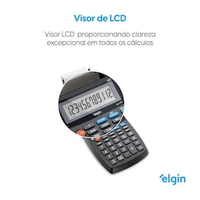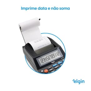 Calculadora de 12 dígitos com impressão em bobina, portátil, display LCD e alimentação por fonte opcional ou pilha. Cálculos de vendas comerciais, cálculo com taxas, seletor de impressão, memória, seletor de arredondamento, seletor de decimais, correção dígito a dígito, porcentagem, duplo zero, impressão monocromática e rolete entintado IR-40.