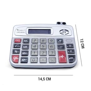 Calculadora 8 dígitos Se você precisa de uma calculadora com ótimo custo-benefício, prática e simples, com todas as funções necessárias para o dia a dia, apresento esta novidade. Tamanho ideal para sua mesa de escritório comercial, balcão, firma, empresa, comércio, loja, consultório ou casa. Teclas em acrílico: projetadas e desenvolvidas pensando na facilidade de operação. Calculadora leve e compacta ideal para sua casa ou empresa. Além de cálculos básicos, também tem as seguintes funções: - cálculo de uma constante - porcentagem - raiz quadrada - memória de cálculo - soma total Características: - dimensões: 15 cm x 13 cm x 3,5cm - peso: 165g - display com 8 dígitos - funções aritméticas básicas - tecla para desligamento - utiliza 1 pilha aa - composição: plástico Marca: Calculator