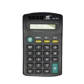 Calculadora de bolso 8 dígitos portátil vx1302 vmp quem nunca recorreu a uma calculadora na hora de fazer algum cálculo Ela é um dispositivo que realiza cálculos numéricos de adição, subtração, divisão, multiplicação, porcentagem, raiz quadrada, etc. Características: - possui desligamento automático e no visor aparece 8 dígitos; - m- , m+ e mrc funciona com pilha aa não inclusa ; - composição: metal e plástico; - tamanho aproximado: c 11 x l 6,5 x a 2cm - painel solar decorativo, sem real funcionamento. -imagens meramente ilustrativas- atenção: a cor do produto pode variar de acordo com o monitor atenção: o fabricante pode alterar a cor de alguma parte do produto sem aviso prévio.