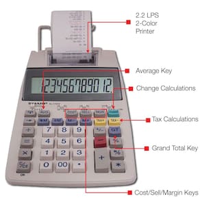 Um LCD de 12 dígitos permite o uso de números grandes, enquanto a impressão em duas cores facilita a diferença entre valores positivos e negativos. Calendário integrado e funcionalidade de relógio. Um layout profissional de teclado permite que você insira números rapidamente. As chaves de custo, venda e margem facilitam a determinação das margens de lucro, enquanto a memória de quatro chaves oferece a capacidade de economizar números comumente utilizados para uma entrada mais rápida. Uma tecla grande total integrada possibilita adicionar os resultados de vários cálculos ao apertar de um botão. Esta calculadora de impressão nítida é alimentada por bateria e CA para maior flexibilidade. - Alimentado por 4 pilhas AA, adaptador de energia não incluído, inclui rolo de papel tamanho inicial
