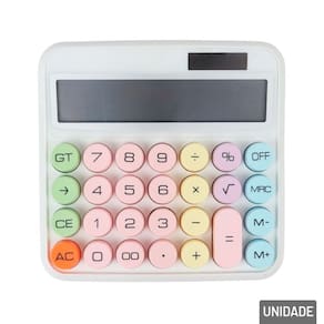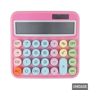Calculadora de Mesa 12 Dígitos Solar Color Tenha eficiência, praticidade e estilo no seu dia a dia com a Calculadora de Mesa. Com design moderno, leve e colorido, ela é perfeita para uso em escritórios, escolas, home office ou até mesmo em ambientes comerciais.\nSeu diferencial está na dupla fonte de energia: funciona com carregamento solar e também pode ser utilizada com 1 pilha AAA (não inclusa), garantindo funcionamento contínuo mesmo em ambientes com pouca luz. Além disso, conta com teclas grandes e macias, que facilitam a digitação, e um visor LCD inclinado que melhora a visualização dos números.\nEspecificações:\nMarca : TINGS\nTipo de material : Componentes Eletrônicos, Plástico\nCores ou Estampa : Color\nDimensões do Produto : 15 X 14,5 X 1 CM\nDimensões da Embalagem : 17 X 15,5 X 4 CM\nPeso Bruto (Gramas) : 0.191