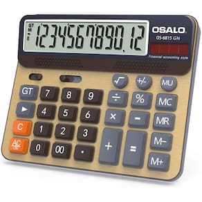. ?Ergonomic Angle Display&. Grande Botão?Quando você coloca a calculadora na área de trabalho, o display de 30°large é exatamente em frente à sua visão, mais claro do que um display reto. Teclas grandes e separadas, tornem cada prensa mais precisa.'Série contábil?Silver painel com botões de cor laranja, azul e cinza, correspondência de cores vibrante. As funções no painel atendem às necessidades do seu trabalho contábil e diariamente.[ABS Engenharia Plástica?Este calculadora é feita de plásticos de engenharia abs de alta resistência, peso leve, mas durável. Ele pode suportar o impacto de cair na altura da área de trabalho por várias vezes."Dual Power?A calculadora usa painéis solares de alta taxa de conversão, energia solar pode ser em áreas bem iluminadas. Ao mesmo tempo, fornecemos bateria correspondente (incluindo uma bateria AA) dupla energia segura e ininterrupta. A calculadora será desligada automaticamente após 8 minutos sem operação.·Use Ocn?Esta calculadora é adequada para todas as ocasiões. Adequado para todos que usam na escola, escritório, casa e supermercado. Como um presente para crianças, pais e amigos também é uma boa escolha.
