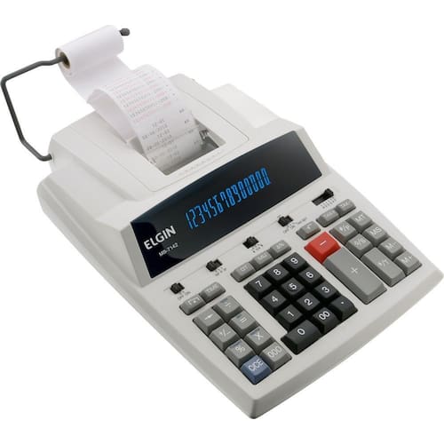 Características Gerais Descrição do Produto Calculadora de Mesa Mb7142 14 Digitos Bivolt Elgin Modelo Mb7142 Visor Fluorescente Voltagem Bivolt Funções Cálculo de taxas GT MU Constante e porcentagem Contador de itens Seletor de arredondamento e decimais Inversão de sinais Delta percentual Raiz quadrada Triplo zero Mark Up Impressão bicolor (Epson M-80) Dimensões Aproximadas 300 x 226 x 72 mm Peso Aproximado 1,500 Kg Garantia 06 meses - sendo 3 meses de acordo com a lei e 3 meses oferecidos pela Elgin. <