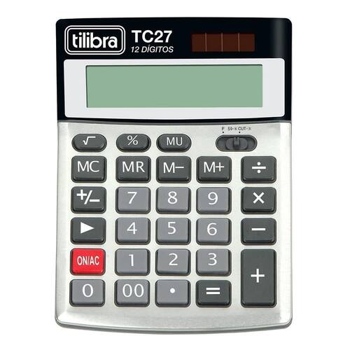 A calculadora de mesa tc27 tem formato de 137x103mm e visor inclinado, também tem fonte de energia dual, garantindo que esteja sempre pronta para uso. A calculadora de mesa possui funções para cálculo de raízes quadradas, alteração do sinal do número exibido +/- e seletor de arredondamento, permitindo o controle da precisão dos resultados. Alta qualidade auto desligamento cor: prata dígitos: 12 fonte de energia: dual : 3 anos maior durabilidade modelo: mesa operações: cálculos básicos resistente teclas plásticas visor inclinado formato: 137mm x 89mm atenção: imagem meramente ilustrativa. Pode ocorrer mudanças no tom da cor para o produto real ou mudanças na embalagem sem aviso prévio por parte do fornecedor/fabricante. Marca: Não Informado