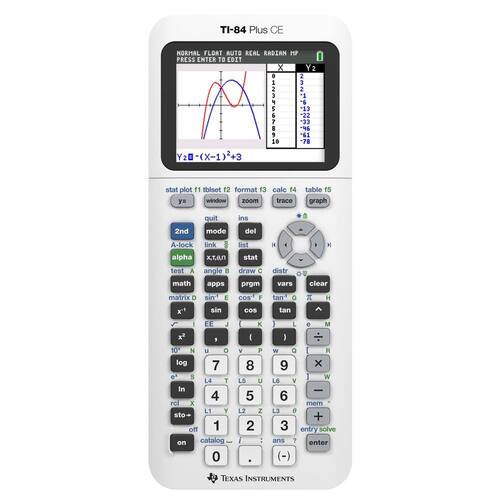 Texas Instruments Calculadora gráfica colorida TI-84 Plus CE, branco brilhante - 15 cores para função gráfica - Mude o estilo e a cor dos eixos e grades nos gráficos - O modo gráfico de sequência mostra o gráfico da série temporal, o gráfico de teia de aranha/escada e gráficos de fase - Nomes de lista definidos pelo usuário. As listas armazenam até 999 elementos - 17 recursos de zoom interativo