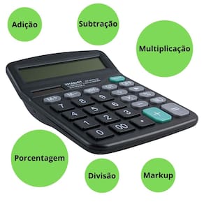 Calculadora para Operações Basicas Adição Subtração Multiplicação Divisão Para Balcões Caixa de Mercado etc A calculadora é uma ferramenta que aumenta sua produtividade e precisão no trabalho facilitando os cálculos e diminuindo a chance de erro humano. Ela é indicada para lugares como caixas de supermercado, balcões e escritórios. Marca: Azs