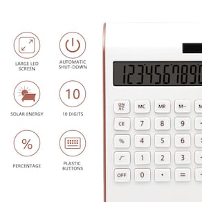 Esta calculadora de mesa funcional padrão com tela grande de 10 dígitos ocupa pouco espaço na sua mesa e cabe facilmente em sua pasta ou gaveta de mesa. Especificações: Nome do item: Calculadora solar Tamanho: 19,3 x 11,5 x 2,5 cm/7,6 x 4,5 x 1 pol. Peso: 190 g (6,7 oz) Material: plástico ABS Alimentação por: Energia solar Número de exibição: 10 Cor: ouro rosa Amplas aplicações: adequado para todos, casa, escritório, estudante Instruções de teclas funcionais: Tecla ON/AC: ligar/limpar Chave MR/MC: Recuperação de memória ou transparente Chave M+/M- : Memória mais ou menos Tecla OFF: desligar - Material de escritório em ouro rosa - Esta calculadora de ouro rosa é projetada para muitas ocasiões, negócios, escritório, casa, orçamento básico, escola e muito mais. Use-o para ajudar suas finanças pessoais ou apenas uma sessão de cálculo rápida. Você também pode enviá-los como presentes práticos para amigos, estudantes e muito mais. - Design elegante e fino: a calculadora de mesa de acessórios e materiais de escritório em ouro rosa tem um design elegante e elegante, botões de bom tamanho, visor LCD grande de 10 dígitos, muito grande, mas ainda muito leve. Seu processo de cálculo será mais rápido e suave com os botões responsivos desta calculadora. - Qualidade e aparência - A tela grande da calculadora para mulheres é feita de ABS durável para garantir o uso diário normal; o design elegante e fino e o layout de botão razoável o tornam bonito e prático, tamanho perfeito, cabe na mesa e faz tudo o que você precisa em um local apertado. - Botões sensíveis e grandes - O visor grande da calculadora portátil tem alta sensibilidade e resposta rápida às teclas, o que melhora a eficiência do seu trabalho; os números nas teclas não são fáceis de usar e podem ser aplicados por um longo tempo. O tamanho grande dos botões evita que você aperte o botão errado. - Melhor ideia de presente - O design da calculadora em ouro rosa é elegante e compacto, muito adequado como presente para colegas, amigos, colegas de trabalho e familiares. É muito útil para estudantes e funcionários públicos que precisam lidar com papéis diariamente. - Alimentado por energia solar: sem baterias para substituir, pois é energia solar.