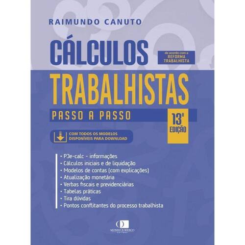 Chegamos à 13ª edição, oferecendo conhecimento para a prática de cálculos nos processos trabalhistas. É indescritível nossa satisfação em alcançar esse número editorial de um livro didático especializado. Os principais incentivadores para o sucesso desta obra são nossos leitores, que tem dado apoio ao nosso trabalho, desde a primeira edição, lançada em 2004. Assim como nas outras edições, esta também tem o texto desenvolvido em forma de perguntas e respostas, modelo aprovado por nossos leitores.