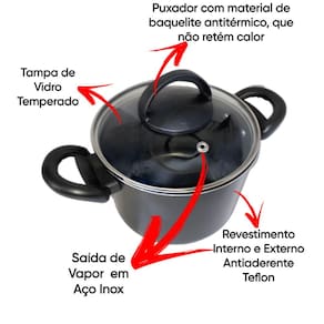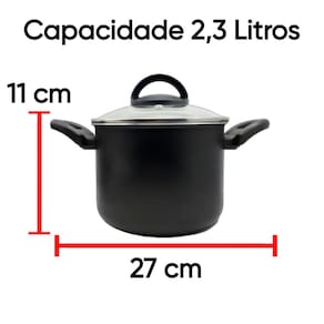Seja bem-vindo a Mandacaru & VarejoNossa Missão Oferecer uma experiência de compra, agradável, divertida e inspiradoraGarantir a satisfação total dos nossos clientes, entregando produtos de qualidade e excelência no atendimento. Quer um toque especial para sua casa? Então entre e sinta-se à vontade, conheça, nossa variedade de produtos, criativos, de alta qualidade e originalidade.Recomendamos que leia o detalhamento da oferta e a descrição do produto desejado.Tenha a tranquilidade de comprar com quem está disposto a te oferecer, o melhor suporte e atendimento de excelência. Nossa equipe de pós venda está à disposição para te auxiliar e esclarecer eventuais dúvidas.Especificações do ProdutoCozinhar é a arte de misturar sabores e encantar, é na cozinha que a mágica acontece, que os amigos se reúnem, que as alegrias se multiplicam ....Que tal, dar um toque de modernidade e praticidade, para a sua cozinha?Beleza, elegância e charme na hora de cozinhar, você vai se apaixonar por esse lindo Caldeirão, produzido com material de alta qualidade e com design arrojado!Caldeirão 16cm de diâmetro, que se destaca pela qualidade e versatilidade, tampa de vidro temperado com saída de vapor e borda de aço inox, com design arrojado o diferencial desse item, está em seu material, alumínio de alta qualidade, espessura de 1,1 mm, que confere ao item uma estrutura resistente garantindo a durabilidade e distribuição eficiente do calor, proporcionando o cozimento mais rápido e uniforme dos alimentos. Revestido com 5 camadas de Antiaderente TEFLON (DuPont) - PFOA Free, internamente e externamente, evitando que o alimento grude na superfície, o que possibilita o preparo dos alimentos com menos gordura, além de proporcionar praticidade no momento da limpeza. Possui cabo reforçado ergonômico, feito em baquelite, material antitérmico que não retém calor, para garantir facilidade e máxima segurança no manuseio.Especificações Técnicas:Dimensões aproximadas - cm: (Altura x Largura x Comprimento – Capacidade Volume):- 1 Caldeirão 16 cm de diâmetro c/ tampa de vidro –11 x 16 x 27 – 2,3 L Revestimento Externo: Antiaderente Revestimento Interno: Antiaderente Espessura Material: 1,1 mmTampa: Tampa de Vidro TemperadoAlça: BaquelitePeso do Produto: 705Dimensões aproximadas da embalagem (AxLxP): 33 x 20 x 20 cmPeso Embalagem - Caixa Parda: 170gRecomendações:Antes do primeiro uso é necessário realizar a limpeza e a cura do item, imprescindível para durabilidade e proteção da camada antiaderente. Lave com esponja macia e detergente neutro, seque-a com um pano limpo. Unte a parte interna com óleo ou outra gordura e leve-a ao fogo baixo por 2 minutos. Deixe-a esfriar, lave, enxugue e está pronta para utilizar. Cuidados:- Mantenha o produto sobre a chama do fogão apenas o necessário para o cozimento, sempre em fogo baixo ou médio (nunca superior a 350°C). - Para conservação e durabilidade do seu produto lavar somente om lado macio da esponja;- Para mexer os alimentos use somente utensílios de silicone ou nylon;- Não exponha as alças e cabos diretamente ao fogo ou fonte de calor prolongado;- Não pode ser levada ao forno e/ou microondas;- Evite a imersão do produto quente em água fria. Sempre o deixe esfriar antes de lavarDetalhes:- Garantia 30 dias contra defeitos de fabricação.- Itens decorativos não acompanham o produto. Imagens meramente ilustrativas. - Para descarte dos produtos e embalagens siga as orientações de reciclagem vigente.Estamos à disposição para qualquer dúvida. Agradecemos a sua visita e aguardamos seu pedido!AtenciosamenteEquipe Mandacaru & Varejo